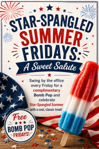 Star-Spangled Fridays Pop off your weekend all summer long with a patriotic cool treat. + Add to Google Calendar + iCal / Outlook export 00 days 00 hours 00 minutes 00 seconds Date May 01 2026 - Sep 04 2026 Time 8:00 am - 5:00 pm Share this event